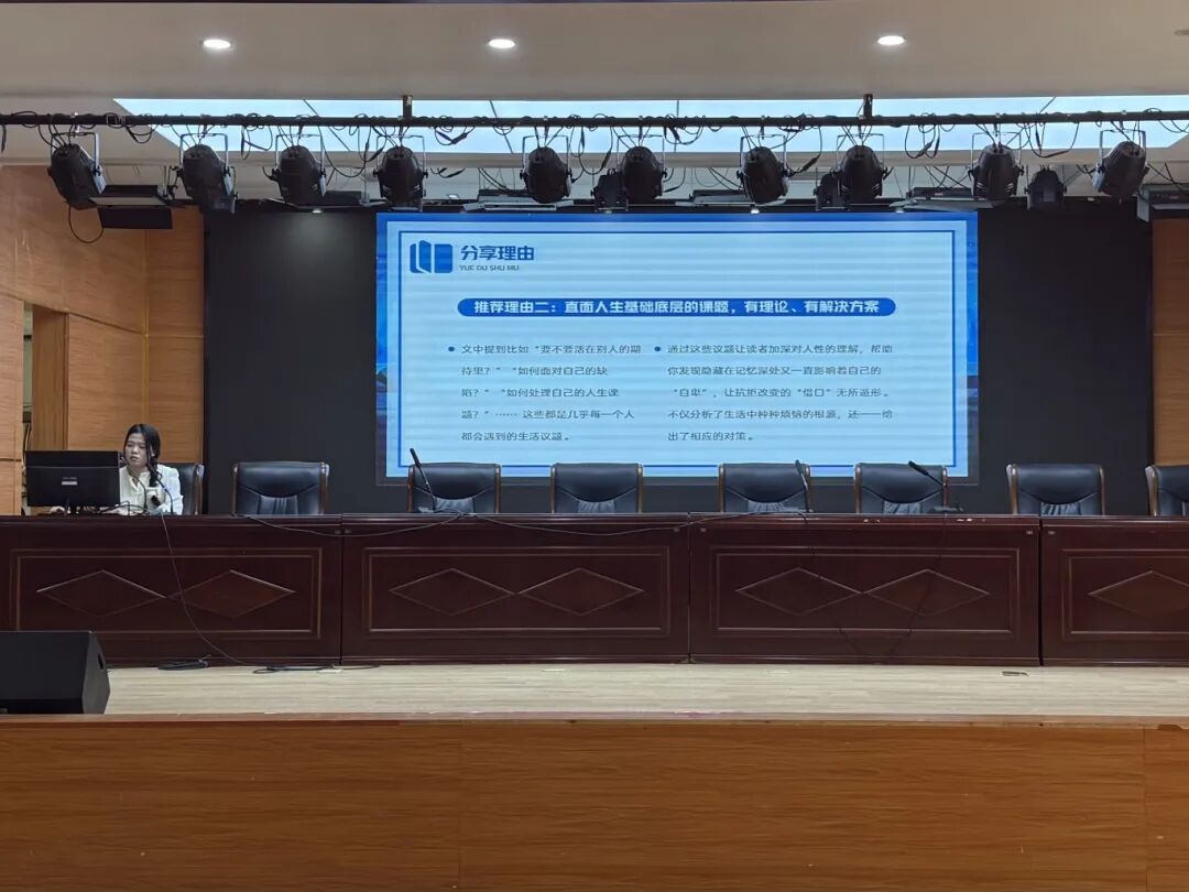 在内容解读环节,培榕老师围绕书籍五大核心章节,提炼出与教师职业紧密相关的关键观点。针对“我们的不幸是谁的错”,主讲人强调“人随时可以改变,不幸源于缺乏勇气”,这让教师们联想到在教育中应引导学生打破“我不行”的自我设限;解读“一切烦恼都来自人际关系”时,“18度井水”的故事让大家深刻理解“客观事实无法改变,但主观解释可任意调整”,启发教师在处理师生矛盾、家校关系时换个角度思考;而“课题分离”理论更是引发强烈反响,“对方如何看待你是对方的课题”这一观点,为教师缓解职场压力、避免过度干涉学生成长提供了新思路。此外,“被讨厌的勇气”“活在当下”等内容,也被解读为教师既要坚守教育初心、不盲从外界标准,又要专注当下教学,平衡工作与家庭的“人生课题”。